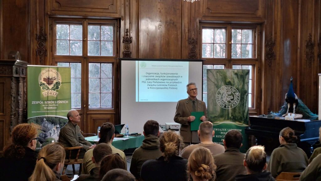 11 grudnia 2025 roku w Technikum Leśnym w Goraju przedstawiciele Regionu Pilskiego Związku Leśników Polskich w Rzeczypospolitej Polskiej w osobach Paweł Dymek i Włodzimierz Wojtczak spotkali się z uczniami piątych klas. Spotkanie trwało dwie godziny lekcyjne, a uczestniczyło w nim 45 uczniów.